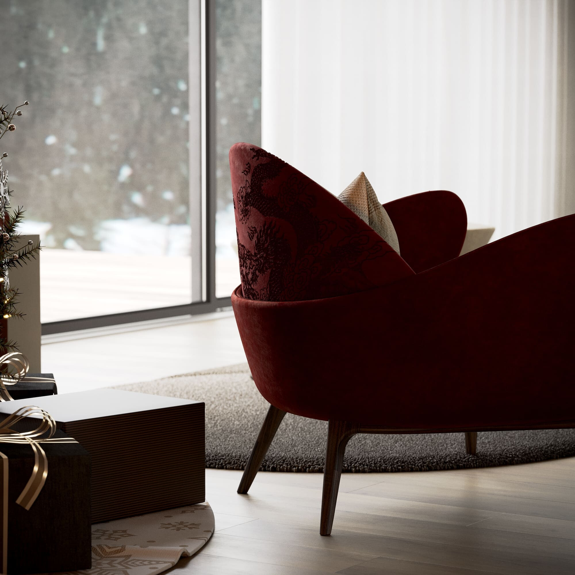 By choosing pieces with sculptural value, such as the Naruto armchair by ALMA de LUCE, you can accentuate this interplay of textures. The piece becomes a visual anchor without resorting to traditional icons of the era, maintaining a minimalist yet profoundly festive narrative.