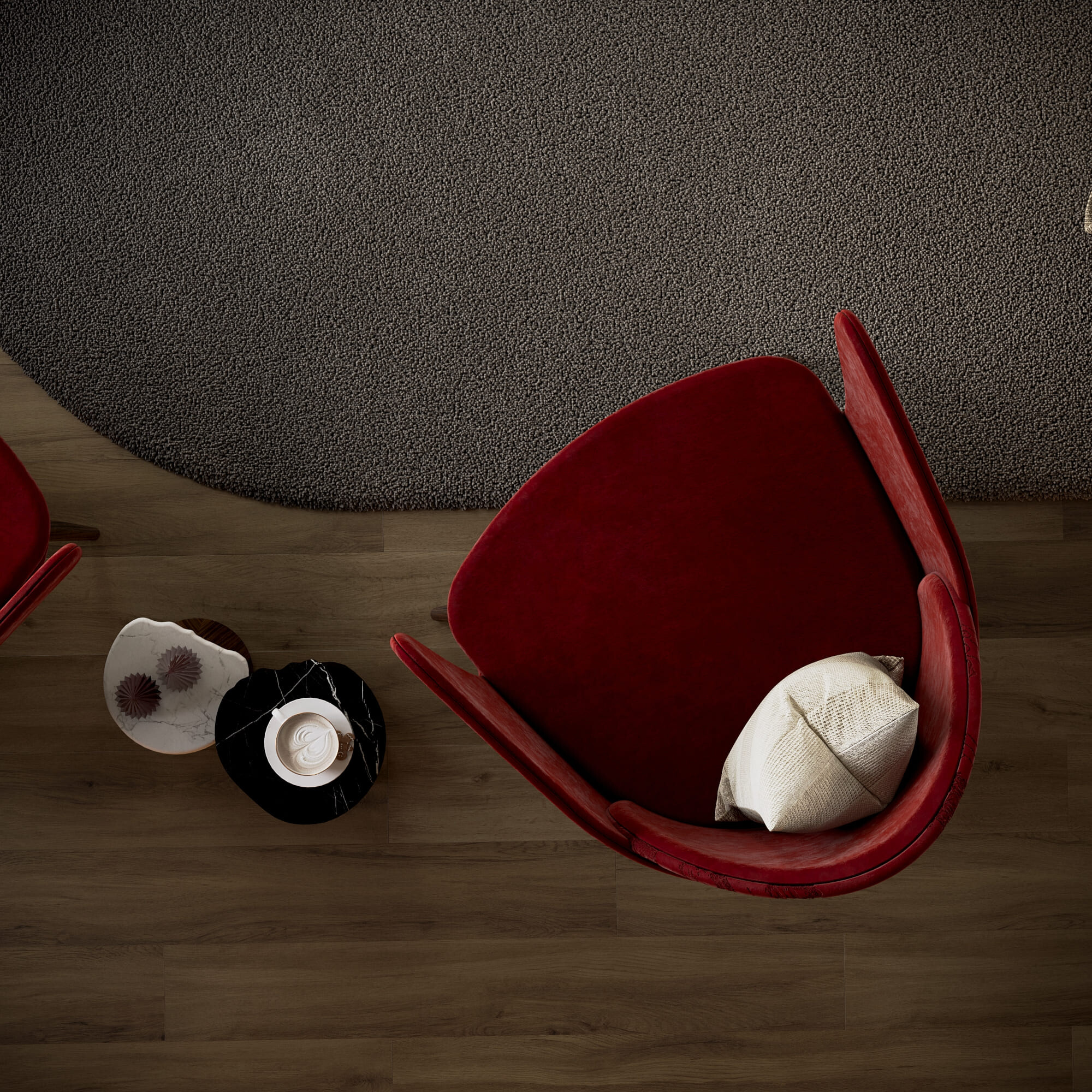 In a carefully lit room, the Antelope Canyon rug from ALMA de LUCE can introduce the necessary focal point to add depth to the chromatic composition. Thus, soberness transforms into a gesture of sophistication, where colour ceases to be the protagonist and becomes a visual language.