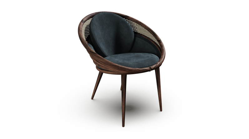 The Ndebele dining chair, made of walnut, brings us this combination of art and function. Its curves contrast with the elegance of thickness and create a sophisticated and modern chair. The round shape guarantees the comfort and touch of modernity perfect for sophisticated restaurants and modern dining rooms.