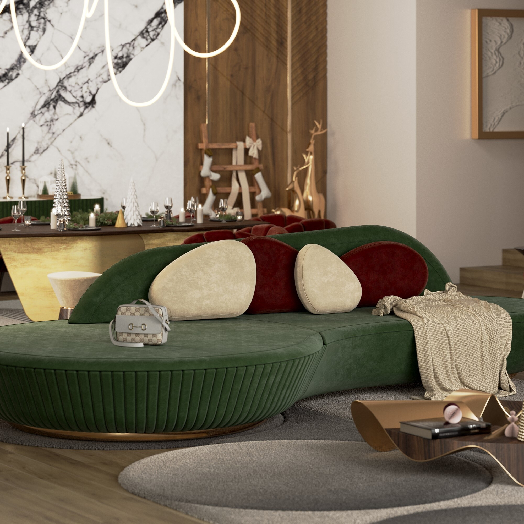 One of the most sophisticated functions of Christmas lighting is highlighting specific pieces. Directed light allows you to reveal materials, emphasise volumes, and transform furniture into structuring elements of the space's narrative.