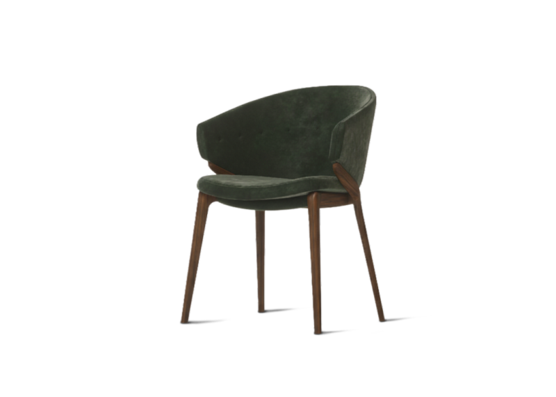 Uphostered in Alma de Luce textured suede Teia ref. Green. Legs in solid Walnut wood